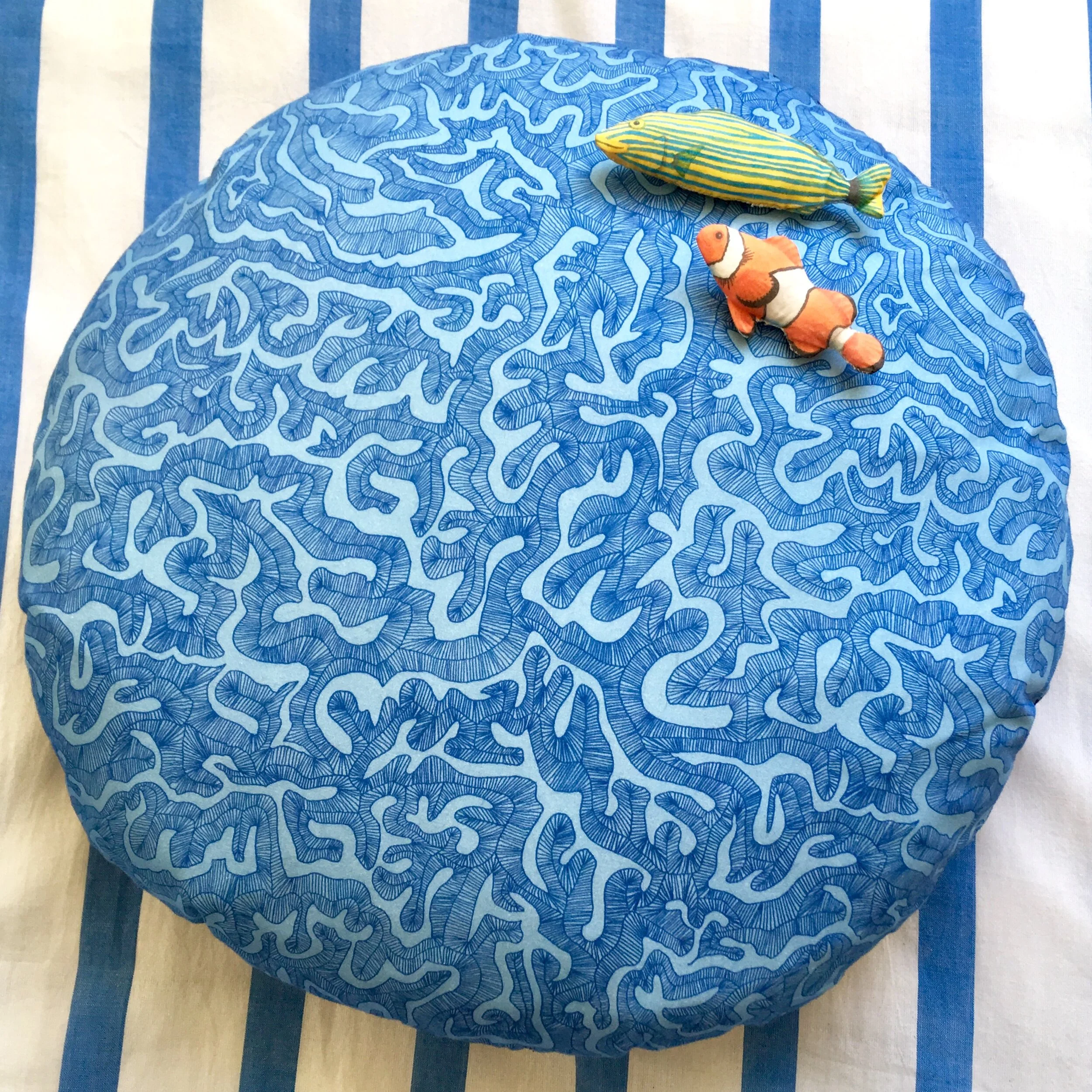 Coast repeat pattern, including oystercatcher, avocet, lapwing, shells, seaweed, feathers, flowers